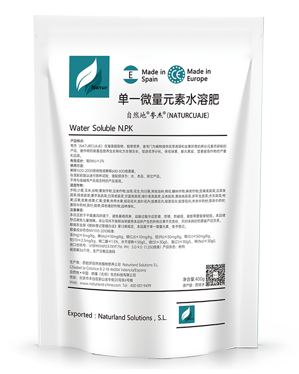 夸杰含海藻提取物10%,钼2%,硼3%,螯合锌2%,磷32%,钾12%,补充生殖营养,促花保果利器。
