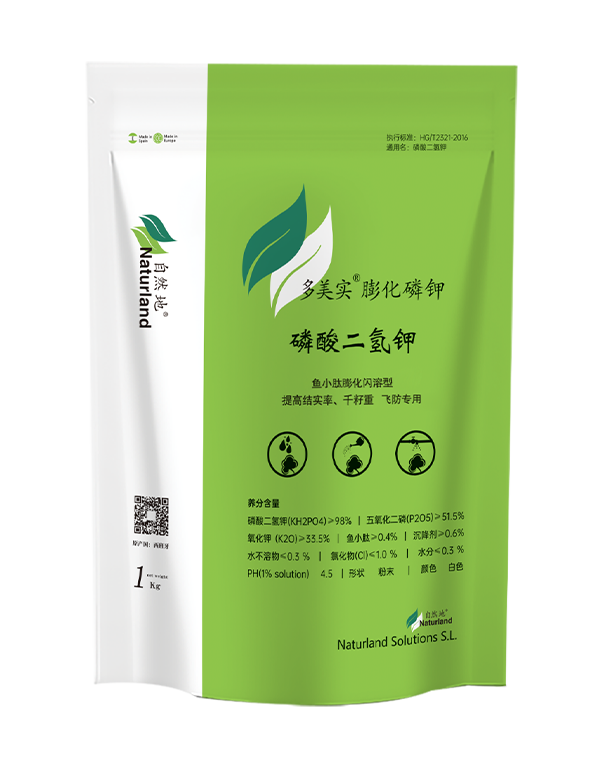 本品采用园艺级膨化型磷酸二氢钾为原料,闪溶于水特别添加鱼小肚、沉降剂,使用安全,加速雾滴沉降抗漂移,能被作物快速吸收利用。本品能有效促进作物根系发育、壮棵不旺长、防止早衰、增加千粒重、提高结实率、改善果实品质,具有显著的增产作用。